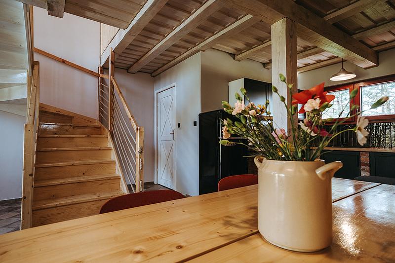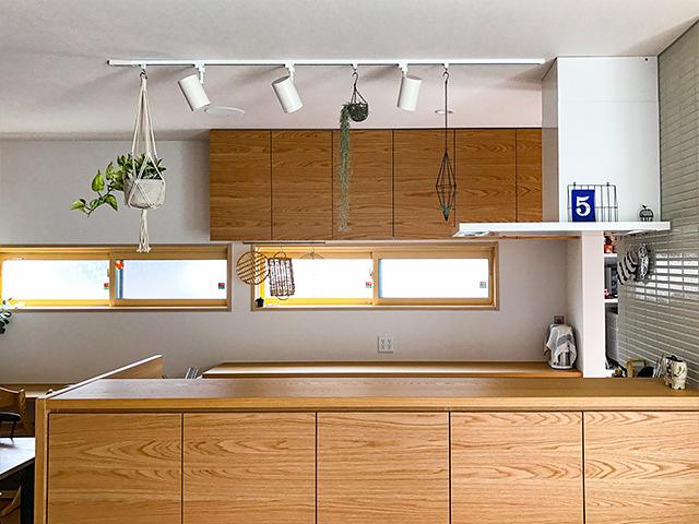 ①ダイニングテーブル越しの階段 / キッチン(中景)