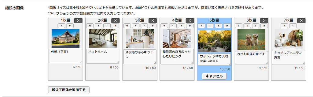 特に室内や設備など、ぱっと見ただけでは分かりづらい写真にはキャプションを活用するのがおすすめです。