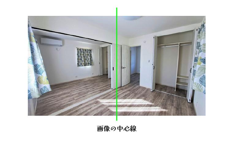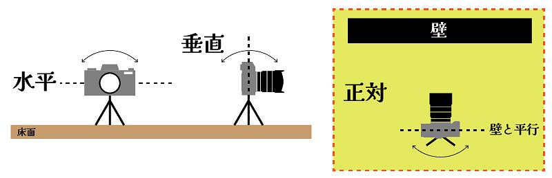カメラの中心(レンズ)を壁の真ん中に合わせる