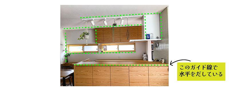 壁や床の線と合わせることで、水平を保ちやすくなります。