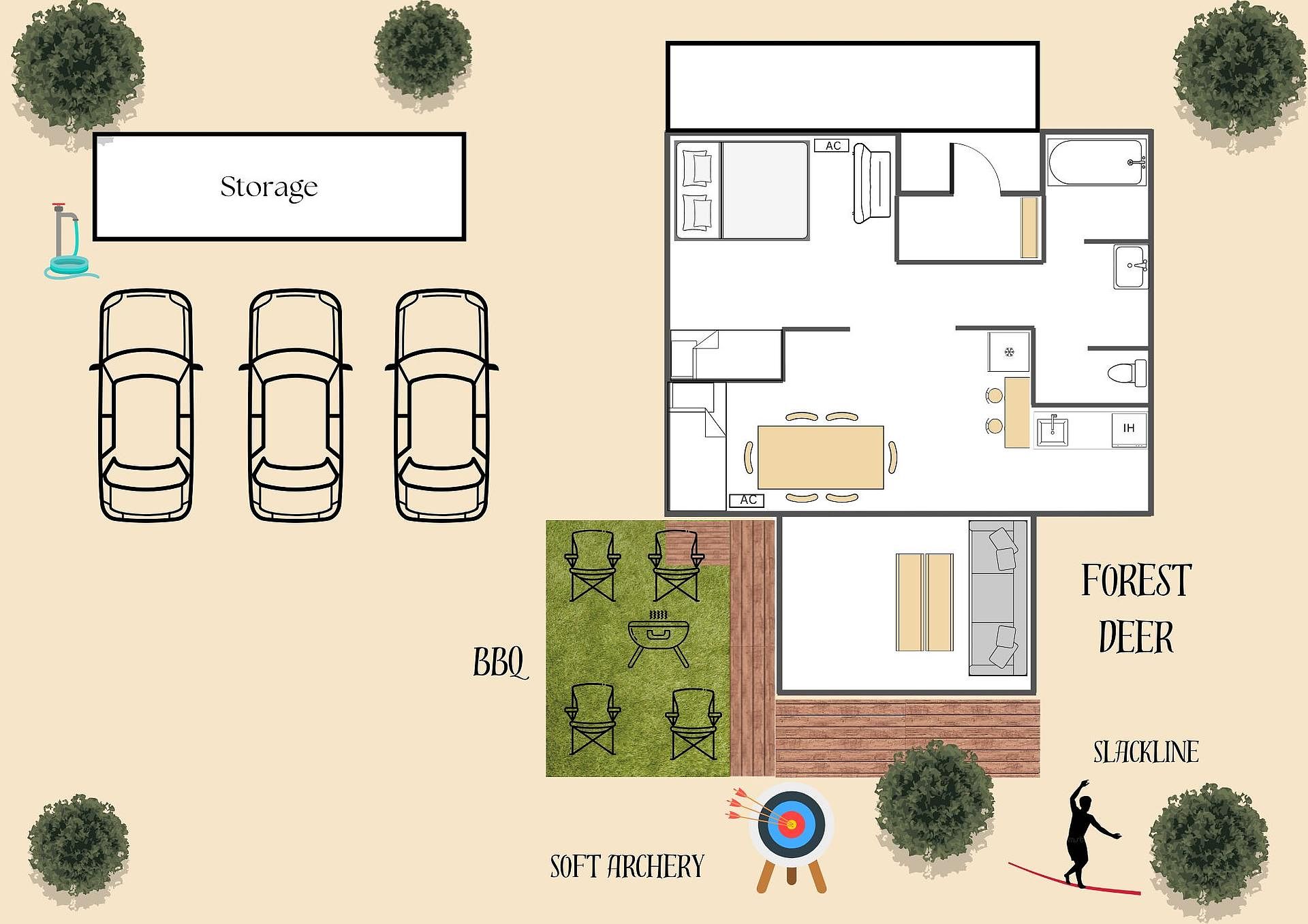 おしゃれな貸別荘 ナチュラルモダンなインテリア、Scandi のスタイルでデザインした別荘です。 一棟貸し切りのForest 99では大切な家族や仲間と贅沢な時間をお過ごしいただけます。 最大の特徴はダイニングキッチンの隣にあるサンルームの大きな窓から見える那須塩原の自然。 料理を作りながら会話を愉しむことができ、部屋にいて外にいるような究極のグランピングを味わえる別荘です。 ウッドデッキから広がる300坪の庭はフェンスで囲まれています。 最大11名まで宿泊可能 隣接しているForest 99 Foxとの2棟貸しで最大20名様までお泊りいただけます◎ (コテージはそれぞれ独立しており、お客様のプライバシーに配慮しております。なお、コテージを単独で予約された場合、予約状況によりお庭が共有スペースになる場合があることを予めご了承ください。) おしゃれ Forest99は自然を感じながらもハイセンスな内装をお楽しみいただける別荘です。 ファミリー ファミリー、大人数グループ様でもご滞在できます。最大11名までお泊りいただけます。 ソフトアーチェリー 子供から大人まで楽しめるデカトロンのソフトアーチェリーセットをご使用頂けます。 ソフトアーチェリーレンタルは別途1,000円になります。 スラックライン スラックラインに立ったり、歩いたり、トリックに挑戦してみませんか?初心者も安心して遊べる丈夫なGibbonスラックラインをご使用頂けます。 スラックラインレンタルは別途1,000円になります。 BBQ 屋根付BBQ ウッドデッキにオーニングがございます。 小雨でもBBQできます。 オープン記念セール中無料でバーベキューセットをお使い頂けます!また、別途1,000円で炭を提供してます。 Wi-Fi 光回線導入、WIFIに対応しており、無料でご使用いただけます。 深夜着OK チェックインは16時から22時の間可能です。事前に到着時間をご連絡ください。 管理人 手前の建物は管理棟になっています。管理人は火おこしやスラックライン、アーチェリーの準備をお手伝いいたします。 チェックイン・チェックアウトは基本的には現地立会いにて対応していますが、無人チェックイン・チェックアウトになる場合もございます。 その場合は事前に詳細をメールにてお送りします。 広いキッチン、調理器具、炊飯器、冷蔵庫、電子レンジをご用意しております。 食材、調味料等はございませんので、ご来場前にご用意をお願いいたします。