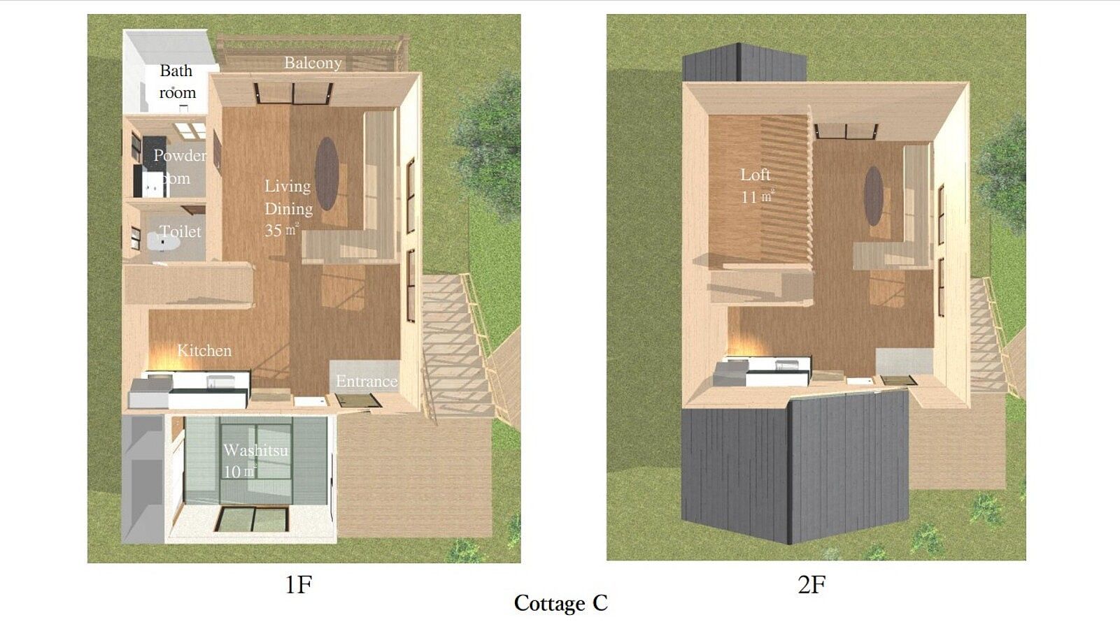 他のお部屋よりも少し高台に位置するコテージ。3世代家族や、大人数のグループに最適!