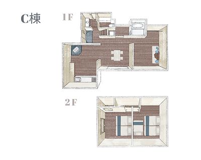 ※基本定員大人5名様まで (小学生以下のお子様の添い寝は何名でもOK!) ※さらに追加で4名様までご宿泊も可能ですが、 寝具や備品(食器・家具など)の追加は出来かねますので、 予めご了承いただきますようお願いいたします。 ●寝具について 1F ダブルマットレス×1セット ダブルサイズのソファベット×1セット 2F シングルベッド×2台 ×1部屋 シングルベッド×3台 ×1部屋 ※1階の寝具をご利用の際は、ご自身でセットをお願いします。 [ 屋外設備 ] ●ウッドデッキ ●BBQセット ・コンロ、網、トング、手袋、炭、着火材 (食材、紙皿など必要なものはご自身でご用意ください) ・調味料 塩・胡椒のみ ●焚火セット ・焚火台、焚火台シート、手袋、火ばさみ、バケツ ・薪、薪割台
