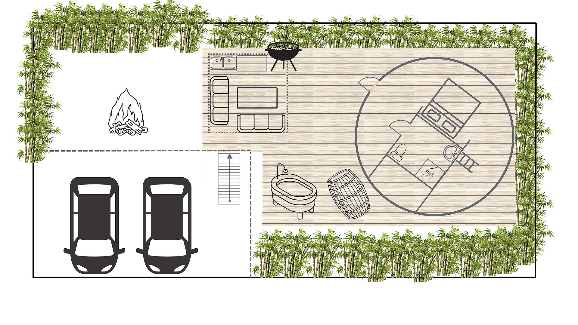 No shoes, No news, No clothes, No plan ここには何もいらない、ただくつろいで暇すればいい。 海まで徒歩5分、竹林に囲まれた完全プライベート空間で至高至極のリラックス体験を。 潮風が吹き込むウッドデッキ、聞こえるのは波の音と鳥のさえずり、笹のざわめきだけ。 1日1組限定の完全貸切空間が、訪れた方の心と身体を真の休息へといざないます。 ドームテント内はデザイナーズライクで洗練された落ち着く空間で、 ロフト&水回りを完備し、最大8名様で宿泊可能(2名様分は追加敷布団となります。) ウッドデッキのアウトドアスペースにはバーゴラ(屋根)、BBQガスグリル、シンクを完備し、快適に自然の中で過ごせます。 さらには贅沢にバレルサウナ&ジャグジー&シャワーも完備(ジャグジーは水風呂にもできます。) サウナ後に竹林に囲まれながらととのえます。