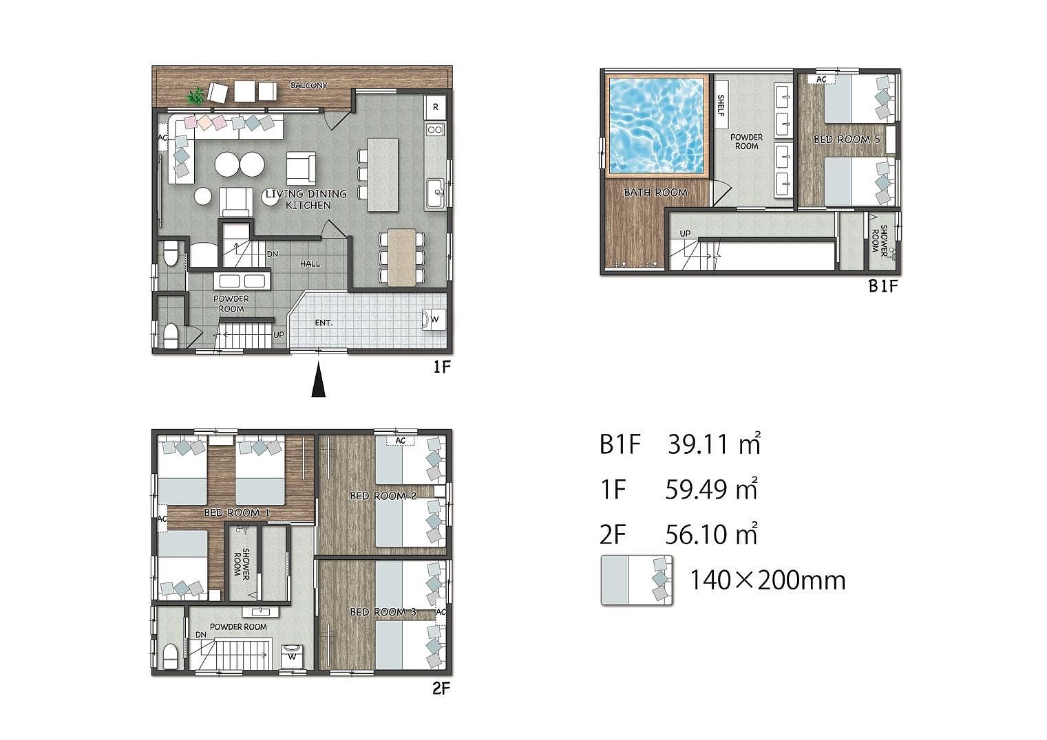 ■リビング ・チューナーレス60インチ液晶テレビ ■ダイニングキッチン ・冷蔵庫 ・電子レンジ ・IHコンロ3口 ・炊飯器 ・たこ焼き器 ・電気鍋 ・コーヒーメーカー ・電気ケトル ・カトラリー、食器、鍋、フライパン ■ベッドルーム ・4部屋 ・ダブルベッド合計9台 ■大浴場 ・6畳の広々浴槽 ・シャワー2ヶ所 ・洗面台4か所 ・シャンプー、トリートメント、ボディソープ ・ドライヤー ・バスタオル ■シャワーブース2ヶ所 ■トイレ2ヶ所 ■洗面台計7ヶ所(大浴場含む) ・洗濯乾燥機