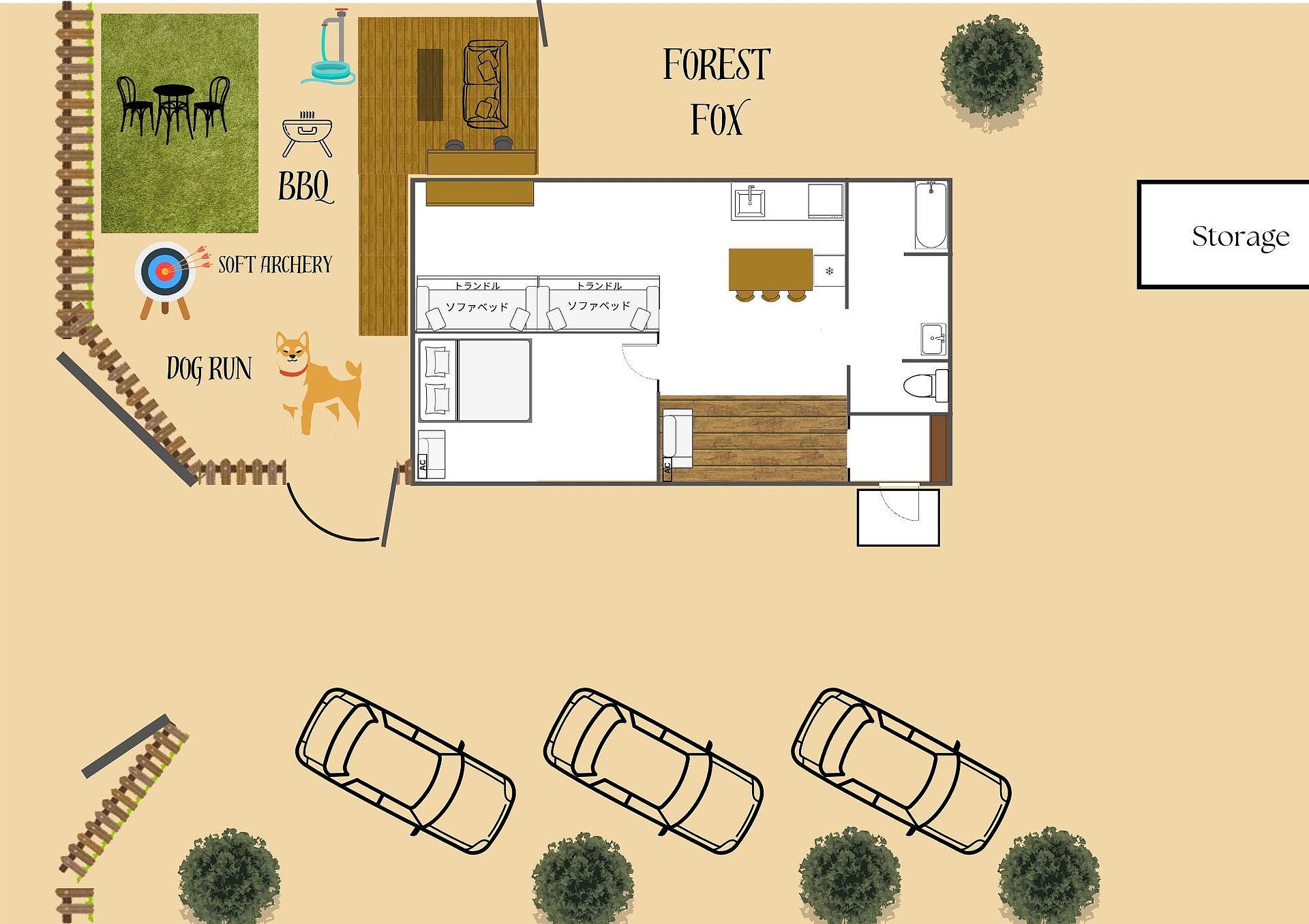 ⭐️2024年6月にオープンしました⭐️ 森に囲まれたForest 99 Foxでは、自然を感じながらもハイセンスなインダストリアルな内装をお楽しみいただけます。 最大9名までお泊まりいただける一棟貸し切りのFoxコテージでは、大切な家族や仲間と贅沢な時間をお過ごしいただけます。 隣接しているForest 99との2棟貸しで最大20名様までお泊りいただけます◎ (コテージはそれぞれ独立しており、お客様のプライバシーに配慮しております。なお、コテージを単独で予約された場合、予約状況によりお庭が共有スペースになる場合があることを予めご了承ください。) キッチン/リビングに隣接しているウッドデッキとバーベキューエリアから出入りが楽です。 対面式バーカウンターで料理を作りながら会話を愉しむことができます。 ウッドデッキにつながる窓カウンターでカフェの雰囲気を楽しめる特別なコテージをご体験いただけます。 バーベキュー BBQスペースでは、テーブル、BBQグリル、アウトドアチェア、トング、があります。オープン記念セール中無料でバーベキューセットをお使い頂けます!炭と着火剤はご持参でお願いします。 屋根付BBQ ウッドデッキに屋根/オーニングがございます。 屋根付きでBBQご使用頂けます。 大人数向け 992平米の土地にコテージが2棟建っており、各コテージに約400平米のお庭および駐車場がございます。 ペット 小型犬 一匹までの同伴OKです。料金2,200円。 2棟貸し切りの場合300坪のアウトドアエリアがプライベートドッグランとしてご利用可能です。 おしゃれ 森に囲まれたForest 99 Foxでは、自然を感じながらもハイセンスなインダストリアルな内装をお楽しみいただけます。 Wi-Fi 光回線導入、WIFIに対応しており、無料でご使用いただけます。 プライムビデオ BBQ後プライムビデオの映画を楽しめます。又は持参のゲーム機を繋げて遊べます。 ファミリー 多人数グループ様でもご滞在できます。 花火OK 常識の範囲での時間(概ね20時ごろまで)や大声や騒ぐなど近隣に迷惑にならないことをお守り頂ければ手持ちの花火はOKです。打ち上げ花火は周りの木々への火の粉が飛ぶ可能性もありますので禁止とさせて頂きます。 夜の到着OK チェックインは16時から22時の間可能です。事前に到着時間をご連絡ください。 素泊まり 当施設は素泊まりの貸別荘になっております。 キッチンやBBQ設備を完備してありますので皆様でご自由にお楽しみください。