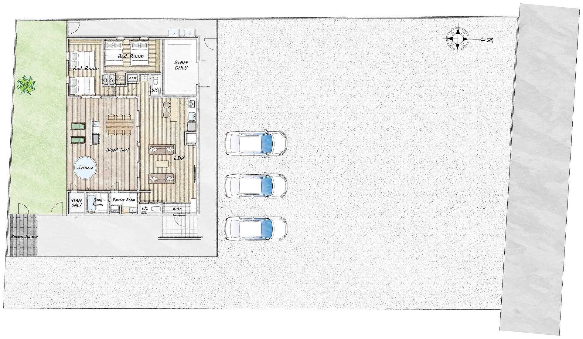◆【直前割】10%OFF 実施中! 2026年2月28日(土) ご宿泊分まで、10%割引 にてご予約いただけます。 ※未就学児は添い寝を条件に2名様まで無料※ 【禁煙・ペット不可】99㎡ 2LDK一棟貸し、屋根付きウッドデッキ&専用庭付 2024年5月新築新規オープン! 九十九里浜サンライズビーチから500m、徒歩約7分。 定員8名様の新築一棟貸しです。 施設内に8名様が同時利用可能な国産ヒノキ大型バレルサウナ、広々したウッドデッキにジャグジーを配置し、ゆったりお寛ぎいただけます。 サウナストーブは電気式のリモコンタイプ。35℃~110℃の範囲でお好みの温度設定が可能、スイッチONから30分ほどでサウナ室内が100℃となります。 コの字型建物の南面に各設備を配置し、施設の南側は雑木林のため、視界を遮る植物により極上のプライベート空間をお楽しみいただけます。 ※近隣に住宅がありますので、大声で騒ぐ、大きな音を出す等、禁止です。 BBQスペースは屋根付きウッドデッキ内にあり、Weber社製の大型ガスクリルを採用。 着火まで10秒、点火消火が簡単操作で行え火力調整もダイヤルを回すだけ。フタ付きオーブングリルで250℃の高温BBQが手軽にお楽しみいただけます! 白を基調とした天井高めのリビングから広々ウッドデッキ、専用庭、雑木林と繋がっており、開放感たっぷりです。 近隣サーフショップのレッスンも充実しており初心者の方も安心してサーフィンを楽しめます。 季節により、乗馬、釣り、イチゴ狩り、等、近隣アクテビティーも充実。 Weber社製大型BBQガスグリルで、快適なBBQもぜひお楽しみください。 ■建物 LDK 23帖(ソファーベッド2台設置) 寝室(南側)8帖(ダブルベッド2台設置) 寝室(西側)8帖(ダブルベッド2台設置) バスルーム 1か所 洗面 2カ所 トイレ 2カ所 屋根付きウッドデッキ 24帖 専用庭(庭を囲うフェンスがあります。) ■寝具 1室目:シモンズ製ダブルベッド×2台 2室目:シモンズ製ダブルベッド×2台 LDK:日本ベッド製ソファーベッド×2台 ※LDKのソファーが簡単な操作でシングルサイズのベッドとなります。 ■屋外設備 国産ヒノキの大型バレルサウナ、円形180cmジャグジー、屋根付きウッドデッキ、専用庭、Weber社製大型ガスBBQグリル ■キッチン IHヒーター(2口)、冷蔵庫、炊飯器、電子レンジ、トースター、電気ポット、鍋、フライパン、等調理器具一式、食器類一式 ■その他 TV(55 インチ)、洗濯乾燥機、 Wi-Fi ■アメニティ■ バスタオル、フェイスタオル、シャンプー、コンディショナー、ボディソープ、ボディスポンジ、コットン、綿棒、歯ブラシセット