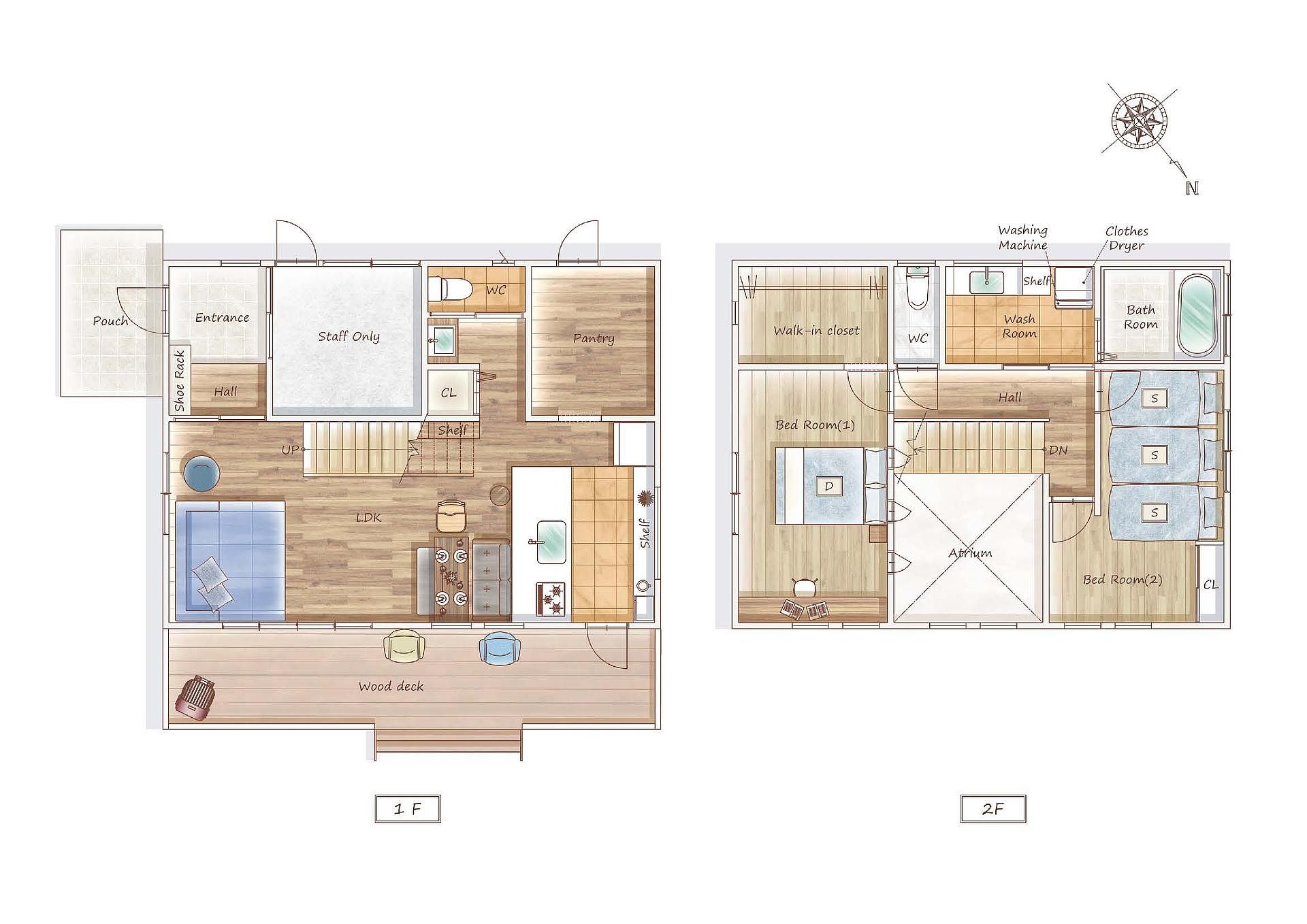 【上記以外の設備/アメニティ】 ●乾燥機用柔軟芳香シート ●洗濯ネット 《キッチン》 ★食洗機 ●食洗機用洗剤 ●手洗い用食器洗剤•スポンジ 衛生上、油や調味料は常備しておりませんが、環境に配慮しゲスト様が残された、調理油や調味料は冷蔵庫に保管しております。 (食器洗いはゲスト様にて対応をお願いしています) ●用意してある物 フライパン、鍋、ザル、ボウル、皿、はし、グラス類 まな板、包丁、スプーン、フォーク、ナイフ等 電子レンジ、電子ケトル、トースター、炊飯器 《その他》 ★屋外シャワー ★ポータブルTV ★BOSEスピーカー(Bluetooth接続) ★掃除機、掃除ロボ ★子供用テーブル付きチェアー ★リビング階段にベビーゲート設置対応可