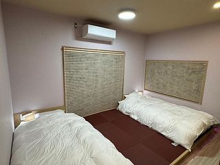 自然豊かな環境に囲まれた当貸別荘では、最大12名様までご宿泊いただけます。 お楽しみいただける施設としては、シアタールームではカラオケやゲームがお楽しみいただけます。 さらに、ダーツや豊富な漫画コレクションもご用意しており、 秋になると庭園が美しい紅葉やイチョウで彩られ、季節の移ろいを感じていただけます。 大人の隠れ家的な雰囲気を楽しんでいただける贅沢なひとときをお過ごしください。 ▼施設概要 『1階』 2段ベッドルーム・リビング・キッチン・洗面台×2・トイレ×2・シアタールーム カラフルで可愛い2段ベッドルームは6名就寝可能です。 『2階』 和室寝室 落ち着いた雰囲気でおやすみ頂きたいお客様は和室寝室がおすすめです。和室寝室は6名就寝可能です。 ▼設備 『2段ベッドルーム』 6名様分寝具・空気清浄機・AtomophWindow 全ベッドにUSB充電コンセント 『2階和室』 6名様分寝具・空気清浄機 全ベッドにUSB充電コンセント 『キッチン』 冷蔵庫・電子レンジ・電気ケトル・炊飯器・ビールサーバー(有料) フライパン・鍋・お箸・スプーン・フォーク・お玉・フライ返し・菜箸・コップ・平皿・お茶碗・スープ用ボウル・包丁・まな板 『リビング』 ダーツ DARTSLIVEhome 75インチテレビ(Netflix視聴可能) 漫画(ワンピース・NARUTO・鬼滅の刃など) 空気清浄機 『シアタールーム』 65インチテレビ(Netflix視聴可能) 任天堂Switch(コントローラー4つ・マイク2つ) 空気清浄機 『お風呂』 TOTOユニットバス シンラ ReFaシャワーヘッド