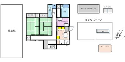 【1泊のみの場合】(1泊のみの時の料金) 1棟貸し ¥18,000(土日休前日¥20,000-) 5名以上追加代金 ¥4,000-(5名以上1人あたり) (例:1泊平日 6名様利用の場合 : ¥18,000(1泊基本)+¥8,000(5名6名追加) =合計¥26,000-) (例:1泊土曜 4名様利用の場合 : ¥20,000(1泊基本) =合計¥20,000-) (GWのみ基本 22,000円) 【連泊の場合】(連泊をされる場合の1泊あたりの料金) 1棟貸し ¥15,000- 5名以上追加代金 ¥3,000-(5名以上1泊1人あたり) (例:2泊 6名様利用の場合 : ¥15,000(1泊目基本)+¥15,000(2泊目基本)+¥6,000(1泊目5名6名追加)+¥6,000(2泊目5名6名追加) =¥42,000-) (例:2泊 4名様利用の場合 : ¥15,000(1泊目基本)+¥15,000(2泊目基本) =¥30,000- ※連泊の場合、週末祝日前日料金は適用しません。