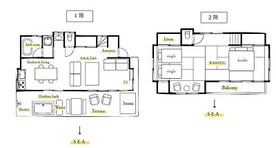 美しい海を眺めながらのんびりと過ごす。 テレワークやワーケーションに鴨川はいかがでしょうか? 鴨川の美しい海一望の古民家を改築し 新たに誕生したand SEA鴨川。 海を見ながら入浴できる天然水を使った露天風呂とプライベートSAUNA。 裏は山、自然を感じながら過ごす特別な時間。 最大8人まで宿泊可能な1日1組限定の貸別荘。 海と共に特別で贅沢な1日をお過ごしください。 サウナの種類:バレルサウナ(夏は1時間、冬は1時間半で80℃/最大85°C) シェア率世界ナンバー1のフィンランド製のヒーターHARVIAをインストール。 サウナストーンに水をかけるセルフロウリュウもお楽しみいただけます。 天然水の水風呂と自然あふれるプライベート空間での外気浴も相まって、極上のととのえ体験をお約束します。 天然素材のコットンリネンを使用 肌に触れるものだからこそこだわりました。 たくさん楽しんで疲れた体の為に。 天然素材の為、肌触りが良く、ごゆっくりお休み頂けます。 吸水性が抜群の綿と、放湿性に優れた麻が絶妙のバランスなので、高温多湿な日本にぴったりの素材です。 ★別邸もございます 当館の隣にも、貸別荘「and SEA The Terrace」がございます。 最大6名様まで宿泊可能です。(小学生以下無料、ペット可) テラスが開放的でとてもおすすめです。 【新型コロナウイルス感染症への対応について】 and SEA鴨川は1日1組様限定の、ご利用者様専用の小さな一棟貸しコテージです。施設内で他のお客様との接触はありませんが、ご滞在をより安心してお過ごし頂けるよう、以下の対策を講じております。 ・消毒、換気、天日干し等の除菌清掃の徹底。 ・消毒用アルコールの設置。 ・体調の注視と接客の際はマスクを着用させていただきます。
