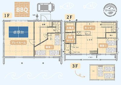 【アミューズメント】 ボルダリング・ブランコ・卓球台・バスケットコート・バトミントン・UNOマシーン・プロジェクター・カラオケマシーン・高速Wi-Fi 【客室】 敷布団、掛布団、枕、シーツ、カバー 【キッチン】 冷蔵庫、冷凍庫、IHコンロ、オーブン、電子レンジ、炊飯器、包丁・まな板・菜箸・おたま・ざる・ボールなど調理器具一式 茶碗・皿各種・コップ・箸・スプーン・フォークなど食器類一式 【バーベキューテラス】 バーベキューコンロ1台、トング、網、 鉄板、テーブル台、ロングベンチ(6人用)、椅子約4脚 ※炭、調味料、食材はご持参ください。 【バーベキュー】 バーベキュー食材、宅配できます。 おひとりさま1500円~(炭、タレ、紙皿、割箸付) ご予約の際にお知らせください。