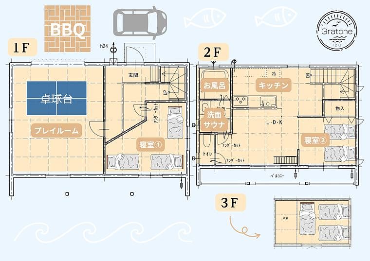 *適応期間:2025年4月1日~2026年3月31日 【1泊あたりの料金(税込)】 ①平日 大人2名利用:1泊1棟¥30,000~ 3~5名様利用時の追加1名料金:1泊1名¥7,000~ ②土曜日、4/27~5/1、8/24~8/30、9/14、10/12、11/2、11/23、1/11、2/22、3/20宿泊の場合 大人2名利用:1泊1棟¥30,000~ 3~5名様利用時の追加1名料金:1泊1名¥10,000~ ③5/2~5、7/12~8/23、12/13~1/3宿泊の場合 大人2名利用:1泊1棟¥50,500~ 3~5名様利用時の追加1名料金:1泊1名¥15,000~ *最小定員は大人2名様からの料金設定となります。(小学生以下は設定人数には含まれません) *中学生以上は、大人料金扱いとなります。 ■BBQ料金:一律¥2,900(特殊ボンベ付) 【子ども料金】 3才以下:無料 幼児(4才から未就学児):¥1,100 小学生:¥2,500 人数変更に関してのキャンセル料金は発生致しません。 但し、人数変更の受付はご宿泊日の前日までとなっておりますので、 ご変更がございましたら必ずご宿泊日の前日までにご連絡をお願い致します。 ※ 当日及びチェックインの際の人数変更はお受け出来ません。