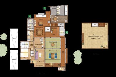 今や世界的に注目される糸島。その糸島市・芥屋に築90年の古民家を全面リフォームして誕生した、いつものリゾートkeyanz。海までは徒歩3分、人気スポットのトトロの森までは徒歩10分というロケーションです。また、福岡空港や博多駅から宿までは車で1時間程。アクセスも極めて良好です。一棟貸しの家でご家族やご友人たちとの滞在を楽しんで下さい! ■■5つの特徴■■ <昭和レトロな体験を!> 釜戸部屋や屋根裏部屋があり、非日常な空間を楽しめます。釜戸部屋でのご飯炊きや、屋根裏部屋でのプラネタリウムは子供さん達に大人気! <2つのバスルーム!> バスタブのあるバスルームに加え、タイル張りのシャワールームもあります。トイレも2つあります。 <日本庭園風の庭に改造!> 垣根や手水鉢のある、ちょっとモダンな日本庭園に改造しました!とても癒されます。 <色々な設備が充実!> 最新のシステムキッチンで自炊を楽しめます。様々な家電類・調理器具・食器類も充実。無料で使える洗濯機とガス乾燥機もあり長期滞在にも便利です。また、各部屋には冷暖房(エアコン6台)を完備しています。 <ワーケーション利用も!> プロジェクター、スクリーン、ホワイトボードを完備(有料)。無料の高速Wi-Fi(334Mbps)もあります。 ■■施設について■■ ☆計7部屋・約200㎡の母屋が丸ごと貸し切りです。 ☆当宿泊施設の最大宿泊人数は10名(2歳未満のお子さんは含まず)です。2歳以上のお子さんは大人同等の宿泊料がかかります。 ☆古民家であってもキッチン・バスルーム・トイレ等の水回りは機能的な最新の設備を導入。快適にお過ごし頂けます。空気清浄機も3台設置しています。 ☆ベッドルームにシングルベッドが2台あります。和室では布団で8名まで就寝できます。 ☆食事は付いておりません。キッチンで料理をお楽しみ下さい。各種調理家電、基本調味料、調理器具、食器類を常備。システムキッチンにはIHコンロ、魚焼きグリル、食洗機がビルトイン。シンクには浄水器もついています。 ☆カセットコンロ(ガス付)、焼肉プレート、ホットプレート、しゃぶしゃぶ等ができる鍋、すきやき鍋などもありますので、食材を買い込んで皆さんでお楽しみ下さい。 ☆バスタオル、タオル、シャンプー、コンディショナー、ボディソープ、ハミガキセット、ヘアブラシ、シャワーキャップ、カミソリ、ドライヤー、ティッシュ、スリッパ、寝具(羽毛布団)をご用意しております。(※浴衣等はございません) ☆母屋裏に駐車スペース(2台)がございます。3台目以降は徒歩2分の駐車場をご利用下さい。 ☆状況に応じて、アーリーチェックイン、レイトチェックアウトが可能です(ご希望に添えない場合あり)。料金等詳細は事前にホストにご相談下さい。 ■■体験・サービス■■ ☆釜戸部屋では薪で釜戸ご飯が炊けます(有料)。火のサポート役としてホストが立ち合います。米などの食材はお持ち込み下さい。 ☆屋根付きテラスで炭火のBBQを楽しめます(有料)。火起こしはホストが行います。食材のみお持ち込み下さい。 ☆所定の場所で焚火が楽しめます。焚火台と薪のセットをご用意しています(有料)。 ☆広い屋根裏部屋は無料で利用可。プラネタリウム、ハンモック、レッグマッサージャーがあります。 ☆基本調味料や油あります。コーヒー(粉)と日本茶をサービスでご用意しております。