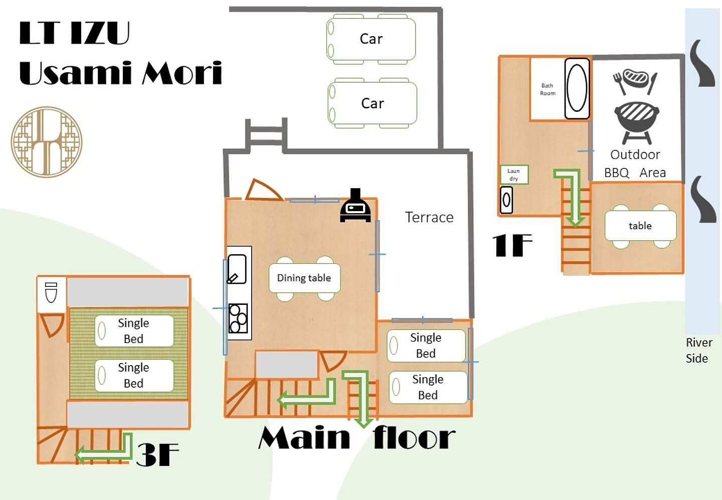 ファミリーや気の合う仲間とBBQするなら「 LT伊豆宇佐美Mori 」(2ベッドルーム4人)の1棟貸切りプランは如何でしょう? 川沿いに、火起こしの煩わしさのないガス直結のBBQ台(無料)があります。道具類も全て揃っています。 食材なども3日前までにご予約いただければ5,000円~(飲物付)からご用意出来ます。 また、コテージ内に薪ストーブ(11月~2月)もありますので、都会の喧騒を離れ、ゆったりとした時間を過ごしませんか? 寝室は、2部屋に2ベッドがあります。 追加2名は、ダイニングにソファーベッドが2つありますので、お使いください。 チェックイン:午後2時 チェックアウト:午前10時 駐車場:無料駐車場2台 Wi-Fi:有
