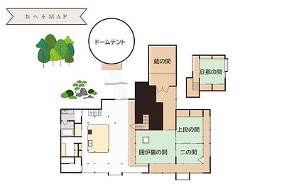 【母屋プラン】 4名様まで(大人および小人含む) 45,000円(税込) 1名追加ごとに+10,000円 【母屋+ドームテントプラン】 4名様(大人および小人含む) 55,000円(税込) 1名追加ごとに+10,000円 子ども料金 小学生以上:大人料金 幼児:無料(布団なし) ※母屋プラン8名以下、母屋+ドームテントプラン10名以下の利用時は、『蔵の間』はご利用いただけませんのでご了承ください。 【決済方法】 事前カード決済