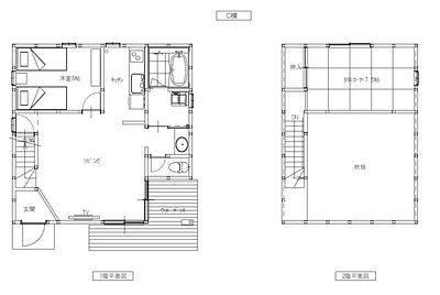 2LDK(1階寝室に2ベッド)・洗面1ボウル 最大7名