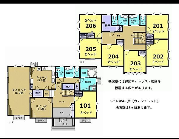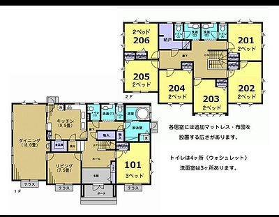 ※料金表は上記、施設写真よりご確認ください。 ペンション駒城は基本1名1泊7000円×人数という宿泊料金です。何名でも一棟貸し切りなので、他のグループはおらず気兼ねなく楽しんでいただけます。最低利用料金をお支払いいただければ何名でもご利用可能です。 土日祝・・・8名料金より 平日・・・・5名料金より 特定日・・・10名料金より ※11月〜3月は暖房燃料費として1泊1グループ2,000円を別途頂戴致します。 ※当施設はお子様料金を特に設けておりません。小学生以上1名様としてカウント致します。 ※未就学児のお子様は人数と年齢によりお見積りします。単独で寝具を使われる場合は1名1泊3,500円となります。※添い寝で寝具を使わないお子様は必ず無料ではありません。お見積り致しますのでご相談ください。 ・近隣にお住まいで宿泊はしないけどBBQを一緒に楽しみたいなど、一部の方が宿泊しない日帰り利用は1名3,500円とさせていただきます。 ★連泊割引 10名様以上で2泊以上される場合は、2泊目が1万円引きとなります。 ★特定日料金 +11,000円、さらに最低利用料金は10名からとなります。 7,8,9月の土曜日と期間中の連休休前日、GW期間、年末年始(12月28日~1月3日)、お盆休み期間(2024年は8月10日〜17日)は料金+11,000円とさせていただきます。また、この期間は最低利用料金は10名様料金となります。9名以下でも利用可能ですが、10名様料金となります。 【料金のお支払いについて】 ご利用日の一週間前までに、宿泊料金をお振込みをお願いしております。 振込後の人数減少は返金致します。また増える場合は追加でお振込みお願いします。現地で現金はご利用いただけませんのでご注意ください。 ※恐縮ですが振込手数料はご負担をお願いします。 【キャンセルポリシー】シーズンや平日・土日祝によって異なります。こちらの記載となります。 ハイシーズン(4月29日〜5月5日・7月1日〜9月30日・12月28日〜1月4日)キャンセル料 前日から3日前:宿泊料金の100% 7日前:宿泊料金の80% 14日前:宿泊料金の50% 21日前:宿泊料金の20% 土日祝・休前日キャンセル料(ハイシーズン以外) 前日、当日:宿泊料金の100% 3日前:宿泊料金の80% 7日前:宿泊料金の50% 14日前:宿泊料金の30% 21日前:宿泊料金の10% ハイシーズン以外の平日キャンセル料 当日:宿泊料金の100% 前日:宿泊料金の80% 3日前:宿泊料金の50% 7日前:宿泊料金の30%