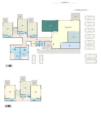 【棟仕様】 キッチン設備・男女別トイレ2ヶ所、各室6ヶ所・天然温泉大浴場 (男女別2ヶ所)1階・2ヶ所)・洗面所(8ヵ所)・LDK70帖・客室6室(和 室4室、洋室2室)娯楽室(カラオケ・プロジェクター・スクリーン・麻雀)・テラスバーベキューコーナー・テニ スコート(1面)等 【温泉浴場】 天然温泉大浴場2ヶ所・洗い場シャワー各4ヵ所等 源泉掛流し24時間ご利用いただけます。 【シャンプー類】 石鹸、ボディソープ、シャンプーリンス(浴室に設置) 【トイレ】 男女別公衆トイレ(洋式) 2ヶ所・各室6ヵ所(洋式) 【洗面所】 ドライヤー(2)、手拭い(洗面用具等はご持参下さい) 【洗濯機】 全自動洗濯機1ヶ所駐車場口(洗剤等はご持参下さい) 【テレビ】 50インチカラーテレビ(1F娯楽室)ビデオ(DVD可)1台・各室6台 【冷暖房空調】 館内エアコン完備(全室)、ファンヒーター等 【スポーツ広場】 テニス、バスケットボール、(ラケット・球あり) 【バーベキュー】 庭園コーナー、鉄板、網、器材(トング等)・テーブル・椅子等 (夜8時まで、炭、食材等はご持参下さい)