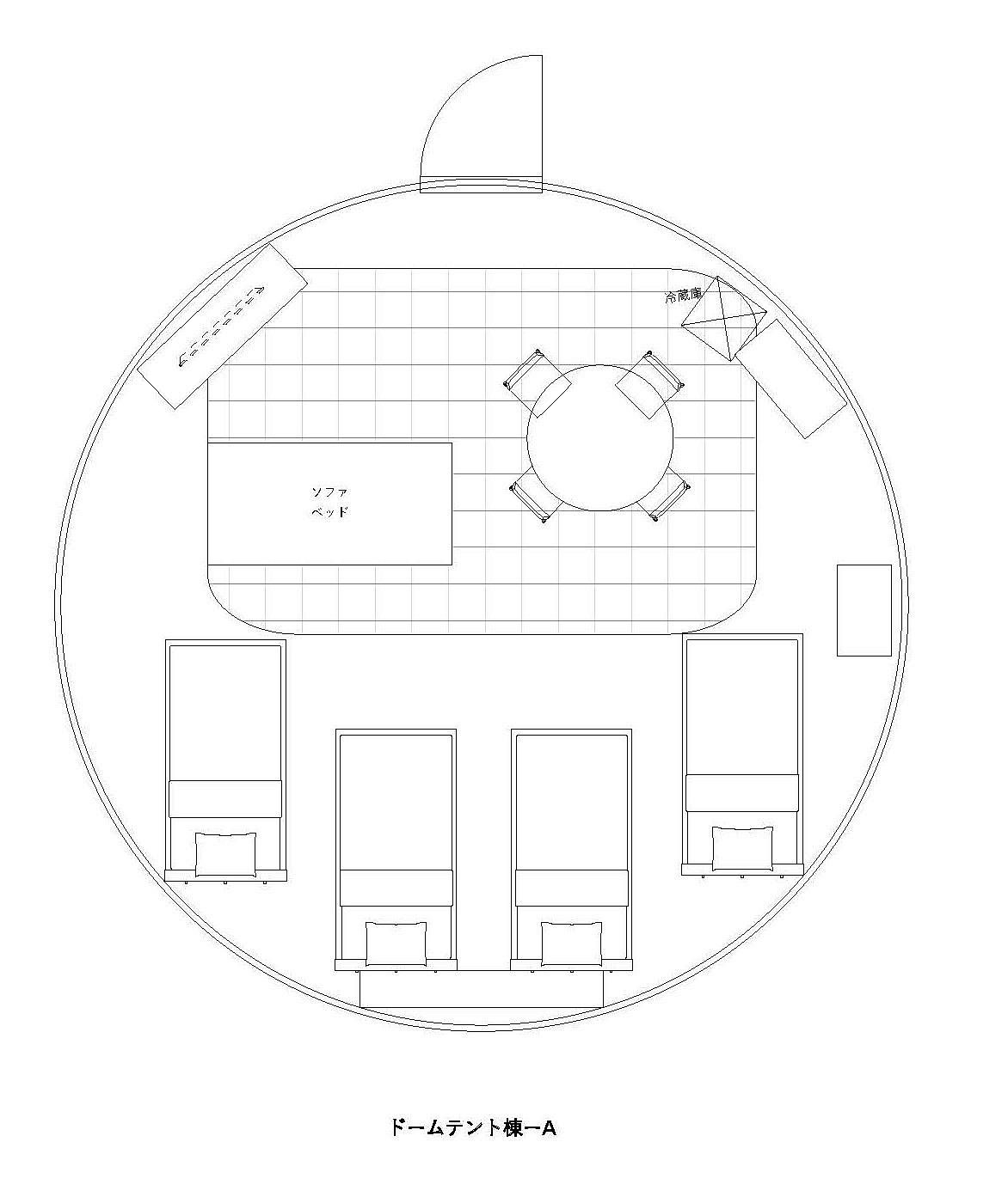 約120㎡の敷地の中にドーム型テントと専用BBQガーデン、専用シャワールームを設置