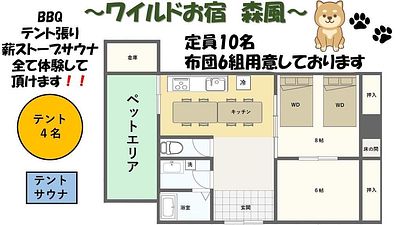 田舎の古民家の良さをなるべく残した施設です。 砂ホコリなどは、すぐに入ってきますし、自然の中にありますので、夏場は、虫もでますので衛生に神経質な方は、ご遠慮いただいた方がよいと思います。 ■禁止事項と注意事項 【ベビーベッドやエキストラベッド】 ベビーベッドやエキストラベッドをご用意しておりません。 【ペットに関して】 ペットも宿泊可です。(1匹1泊1500円) ・土足厳禁、室内禁煙